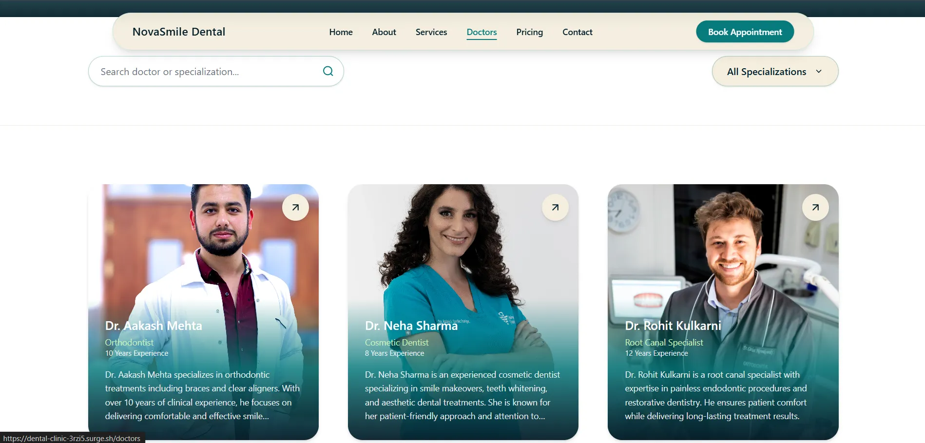This dental clinic website is designed to establish instant credibility and trust with new patients while clearly presenting services and expertise. The layout balances professionalism with approachability, featuring structured service sections, doctor credentials, testimonials, and a streamlined appointment booking flow. Built with performance and SEO in mind, the site loads quickly, adapts seamlessly across devices, and helps clinics rank better in local search results. Every section is strategically crafted to guide visitors from first impression to confirmed appointment.