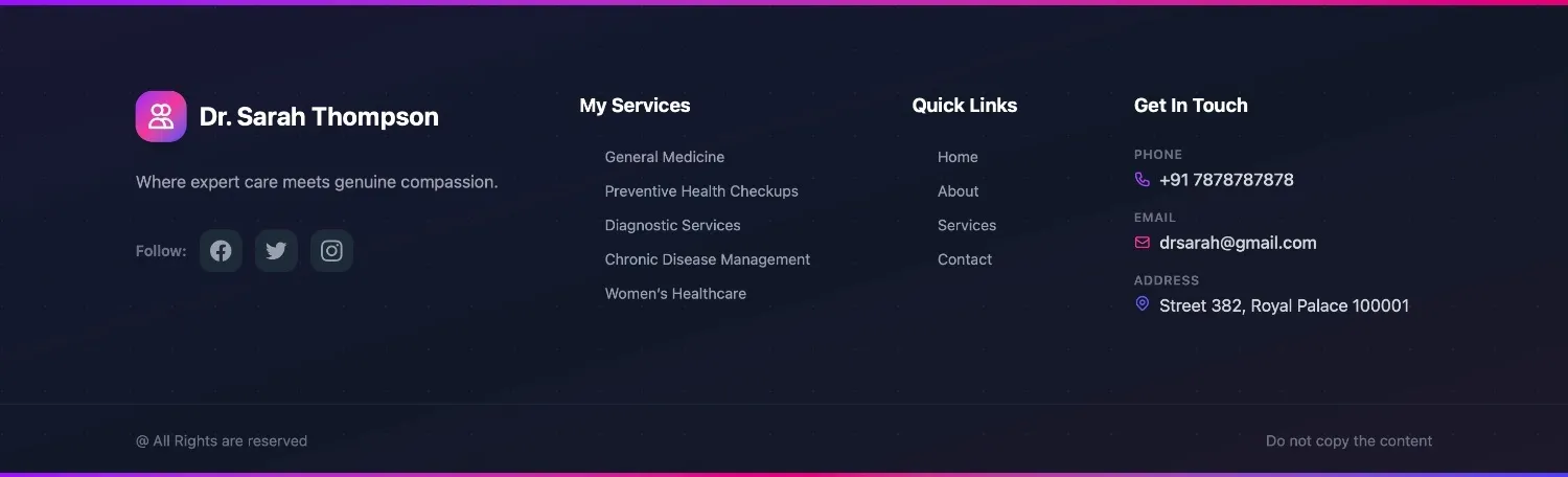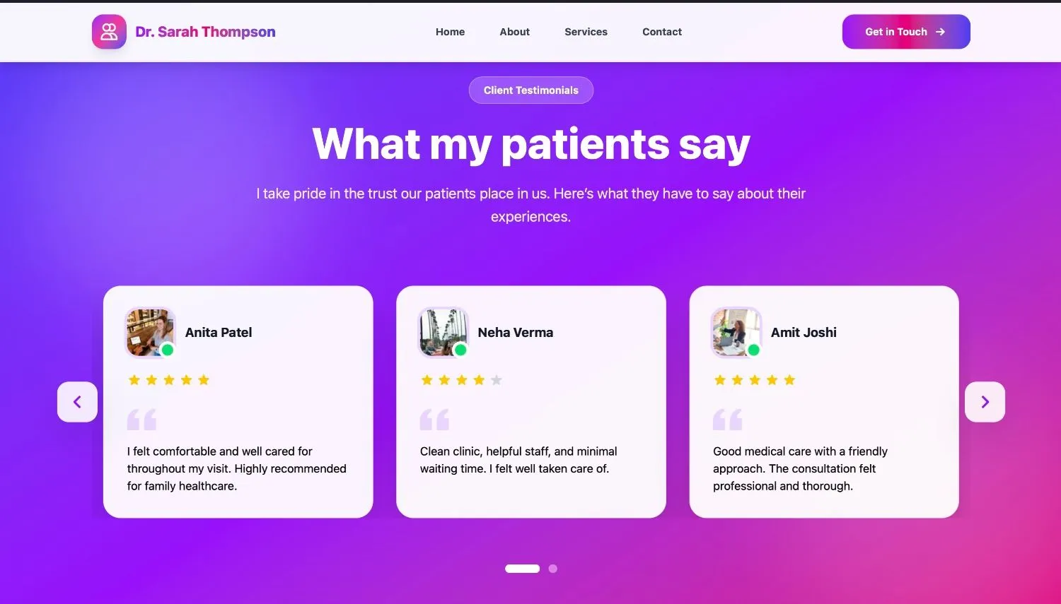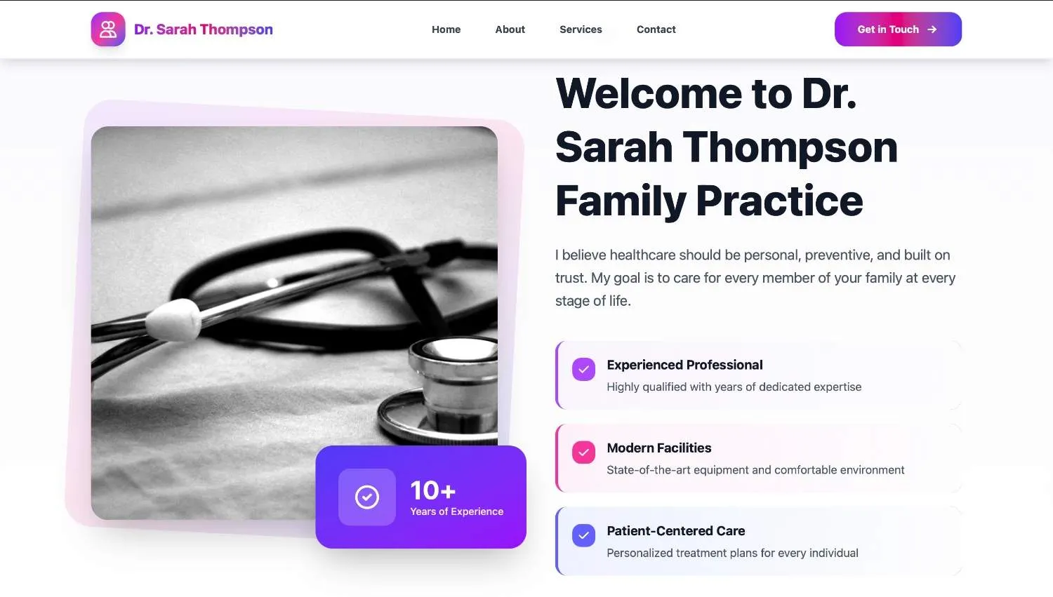 A modern and professionally designed website template tailored specifically for family practice physicians and primary care clinics. This template combines trust, clarity, and warmth to create a welcoming online presence. It includes essential sections such as About the Doctor, Services, Appointment Booking, Testimonials, FAQs, and Contact — making it ideal for building credibility and attracting new patients.