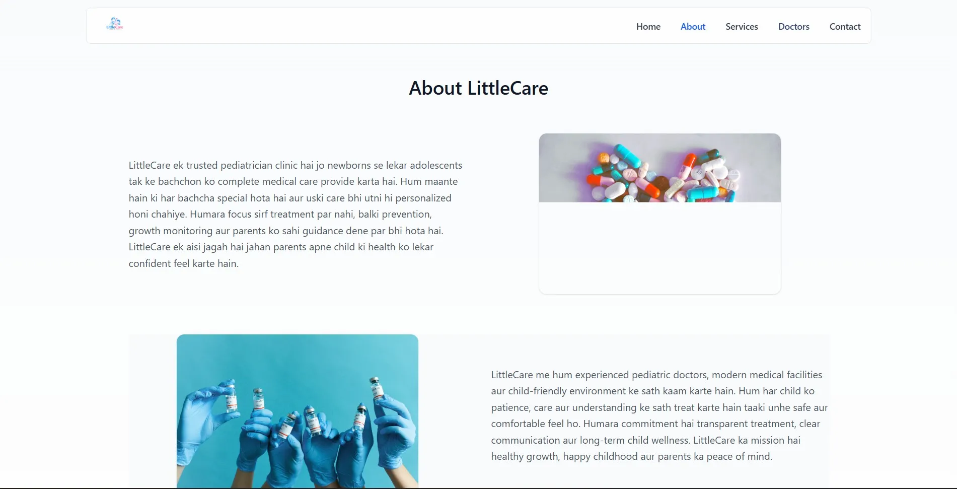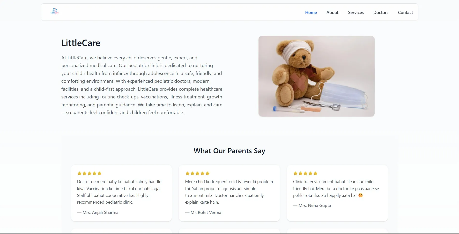 Built with a user-friendly interface and optimized design, LittleCare reflects trust, care, and professionalism — making it a reliable online presence for a pediatric clinic.