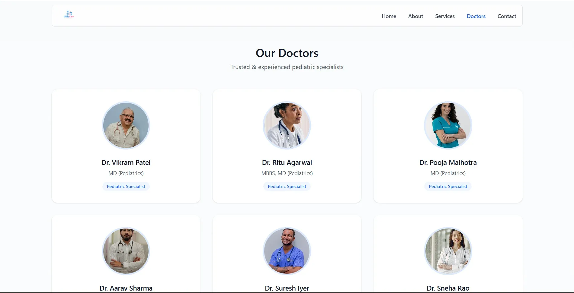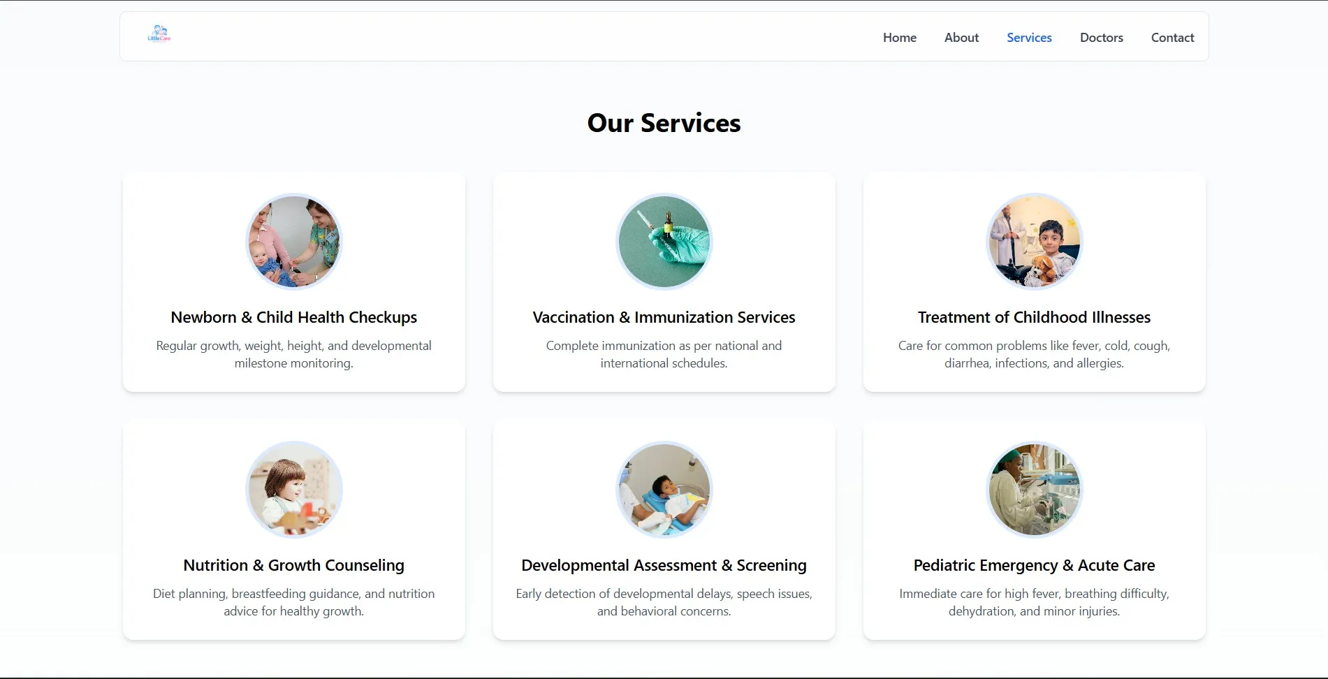 LittleCare is a modern Pediatrician Clinic website designed to provide complete healthcare information and easy appointment booking for children, ensuring a smooth and user-friendly experience for parents.