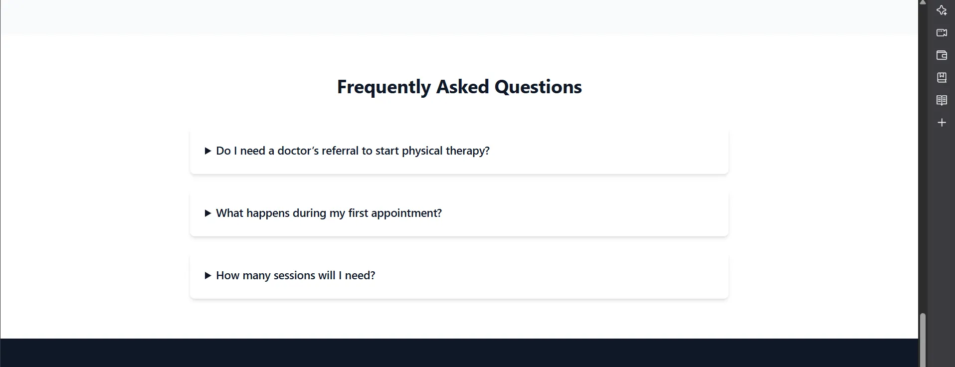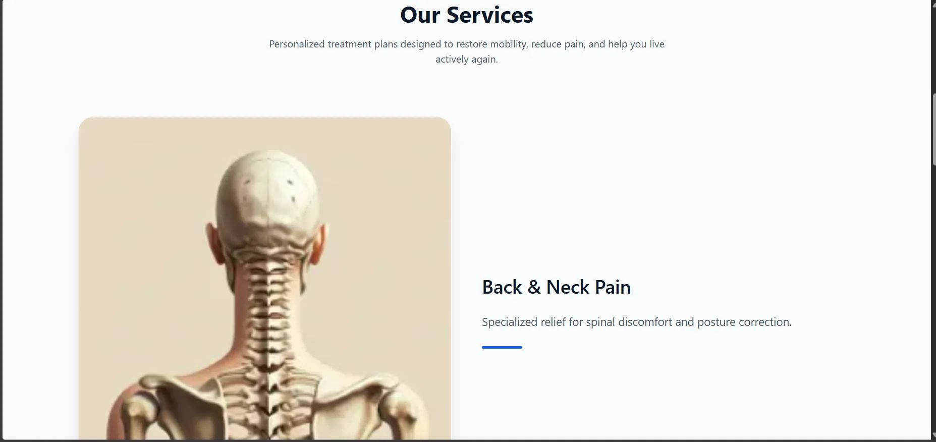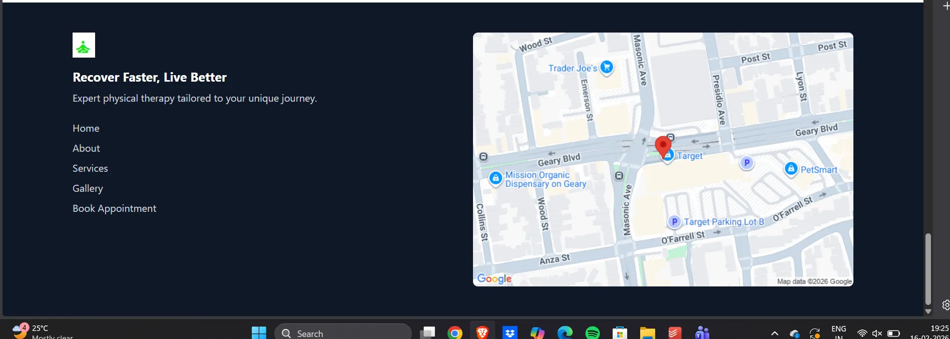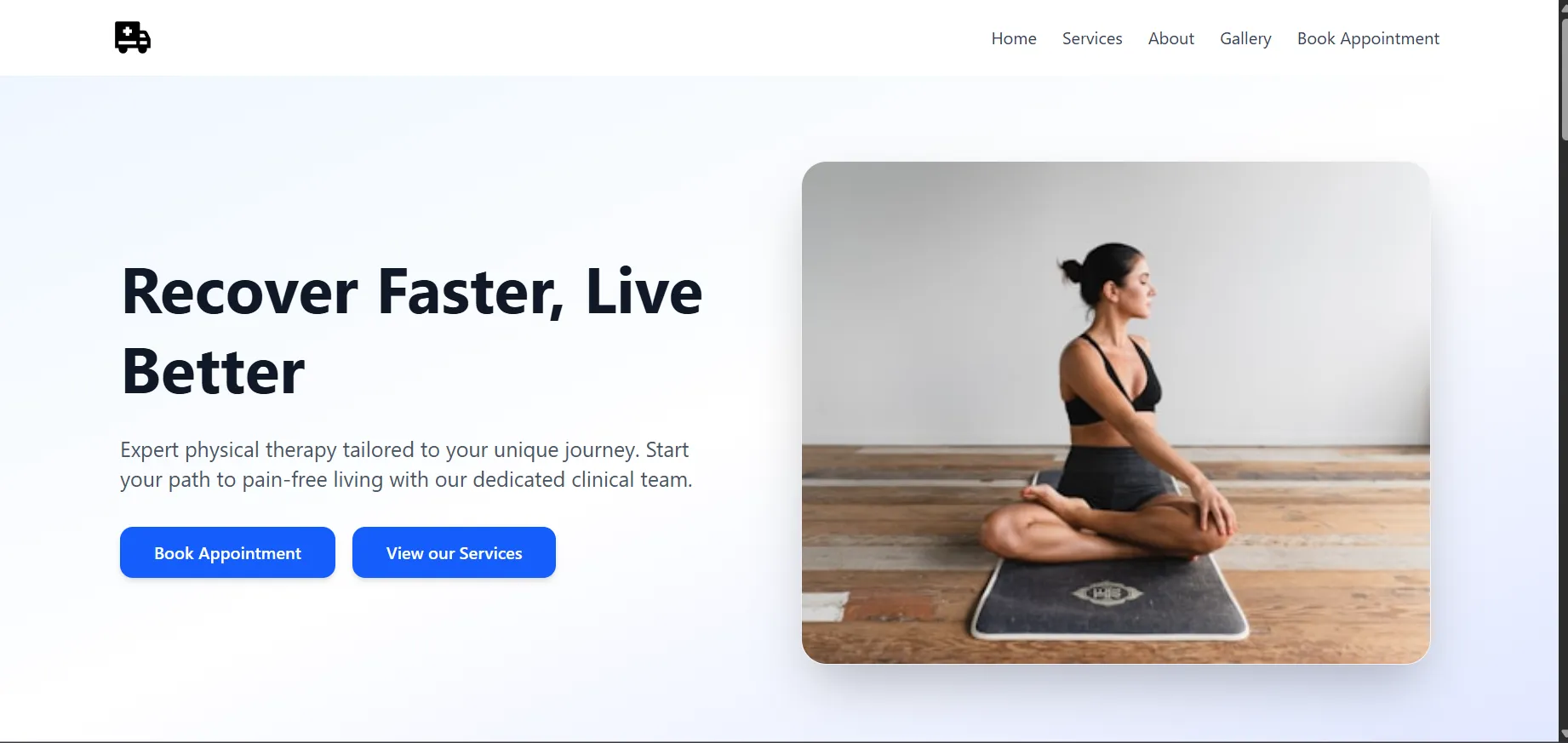 A modern, responsive physical therapy website designed to attract and convert patients. It includes SEO optimization, secure contact forms, service pages, FAQ section, gallery, and appointment booking functionality.