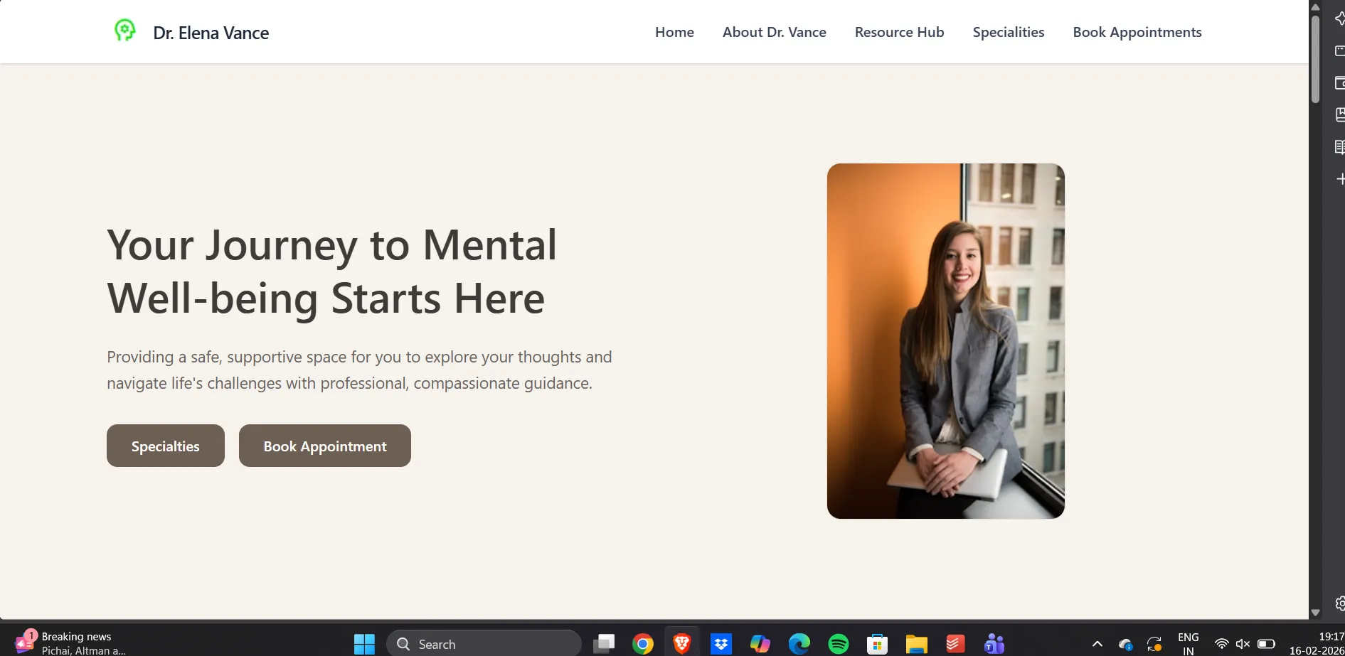 This is a fully responsive psychologist website built to help mental health professionals establish a strong digital presence while maintaining a calm, trustworthy, and professional brand identity.